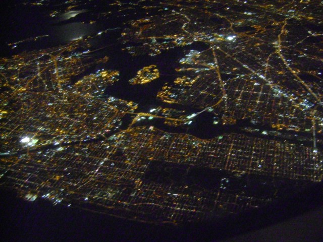 The other night when most of my fellow passengers we’re dozing away in sleepy airplane bliss, I was transfixed at my window seat gazing down at New York City completely aglow. When I realized we were swinging over Manhattan, I pulled out my camera and captured my neighborhood on film from a few thousand feet above. North of 96th Street is always beautiful in its own way, but on this evening, from this angle it was a stunning sight to behold.